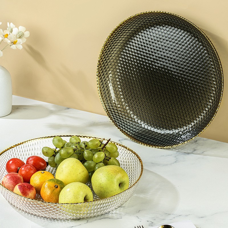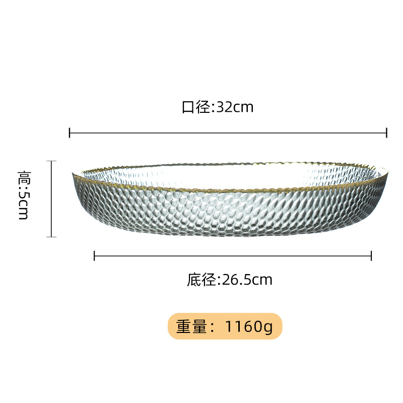 मनके-बिंदीदार सोने की कांच की फल प्लेट में अवतल और उत्तल रेखाएं होती हैं, जो स्पष्ट और पारदर्शी होती हैं, बनावट की मजबूत भावना के साथ और प्रकाश और छाया के अपवर्तन के तहत और भी सुंदर होती हैं।